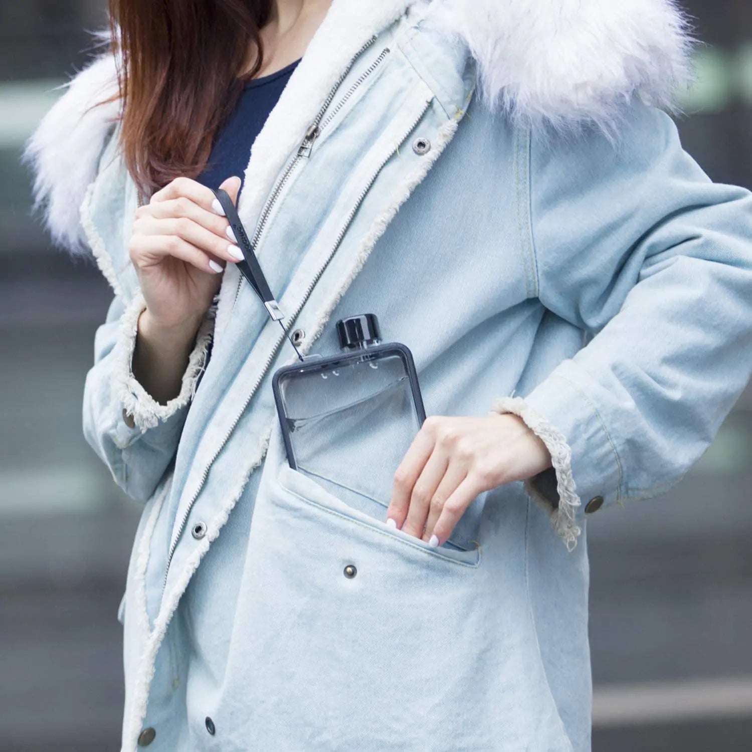 Chic and Compact: Say goodbye to bulky water bottles that weigh you down. Our flat water bottle's innovative design takes up minimal space, fitting seamlessly into your purse or backpack for hydration on the go.
